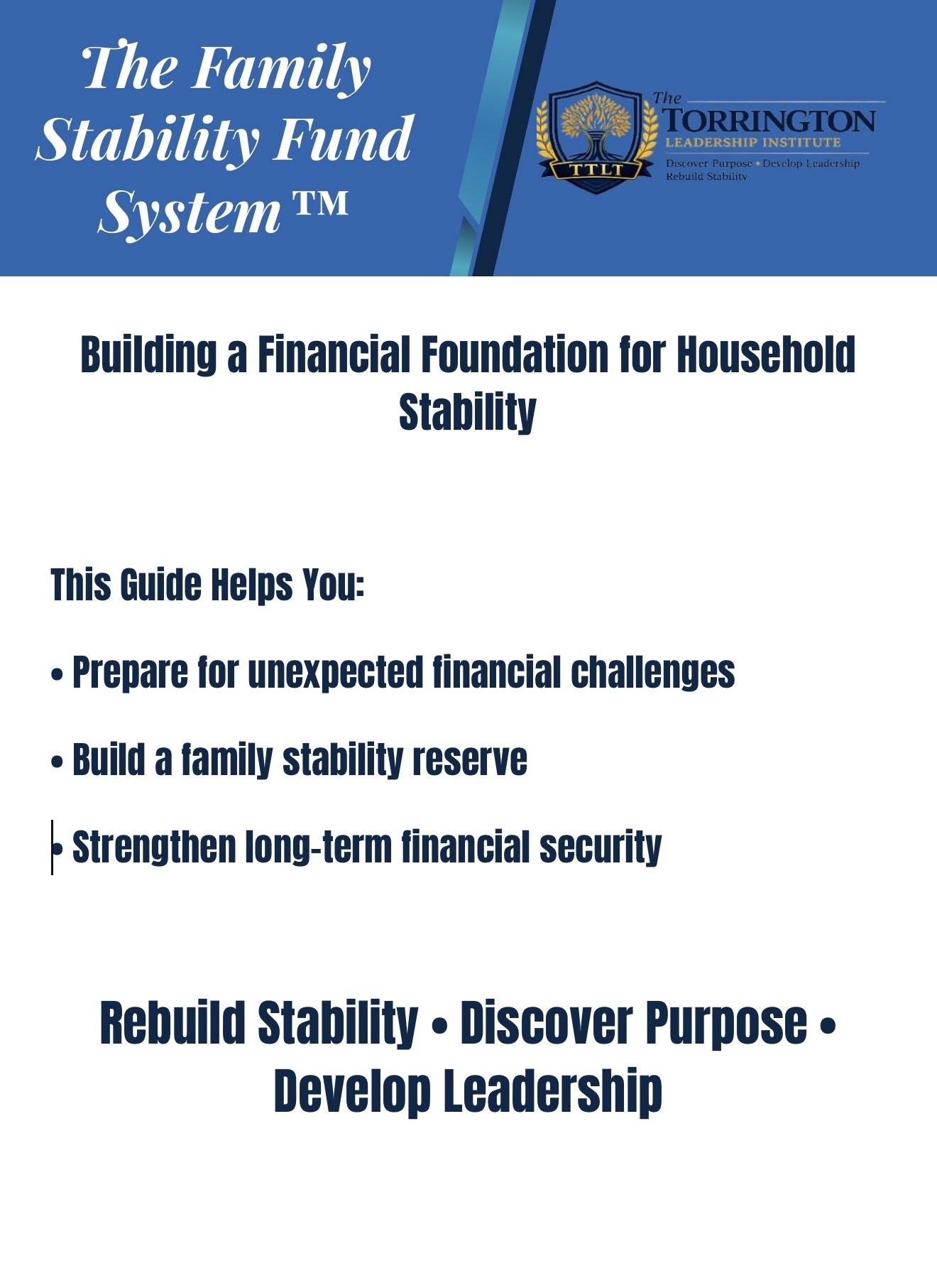 By applying the Family Financial Fund Systemâ„¢, individuals and families can begin building a financial foundation that provides greater stability, confidence, and preparedness for future challenges.